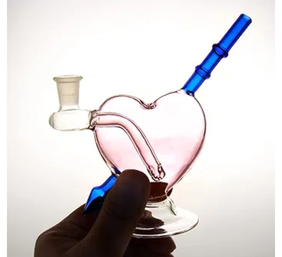 Mini Oil / Crystal Smoking Water Bong. Pink Heart Shaped Glass With Hose.