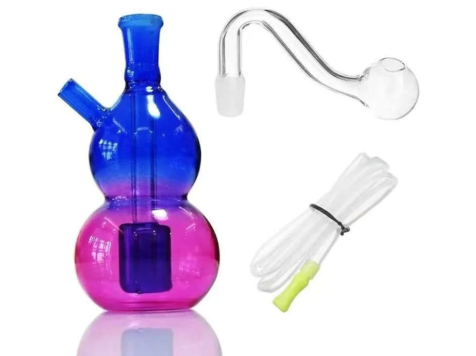 Mini Oil / Crystal Burner Water Bong Smoking Pipe with Hose Blue Pink Purple.